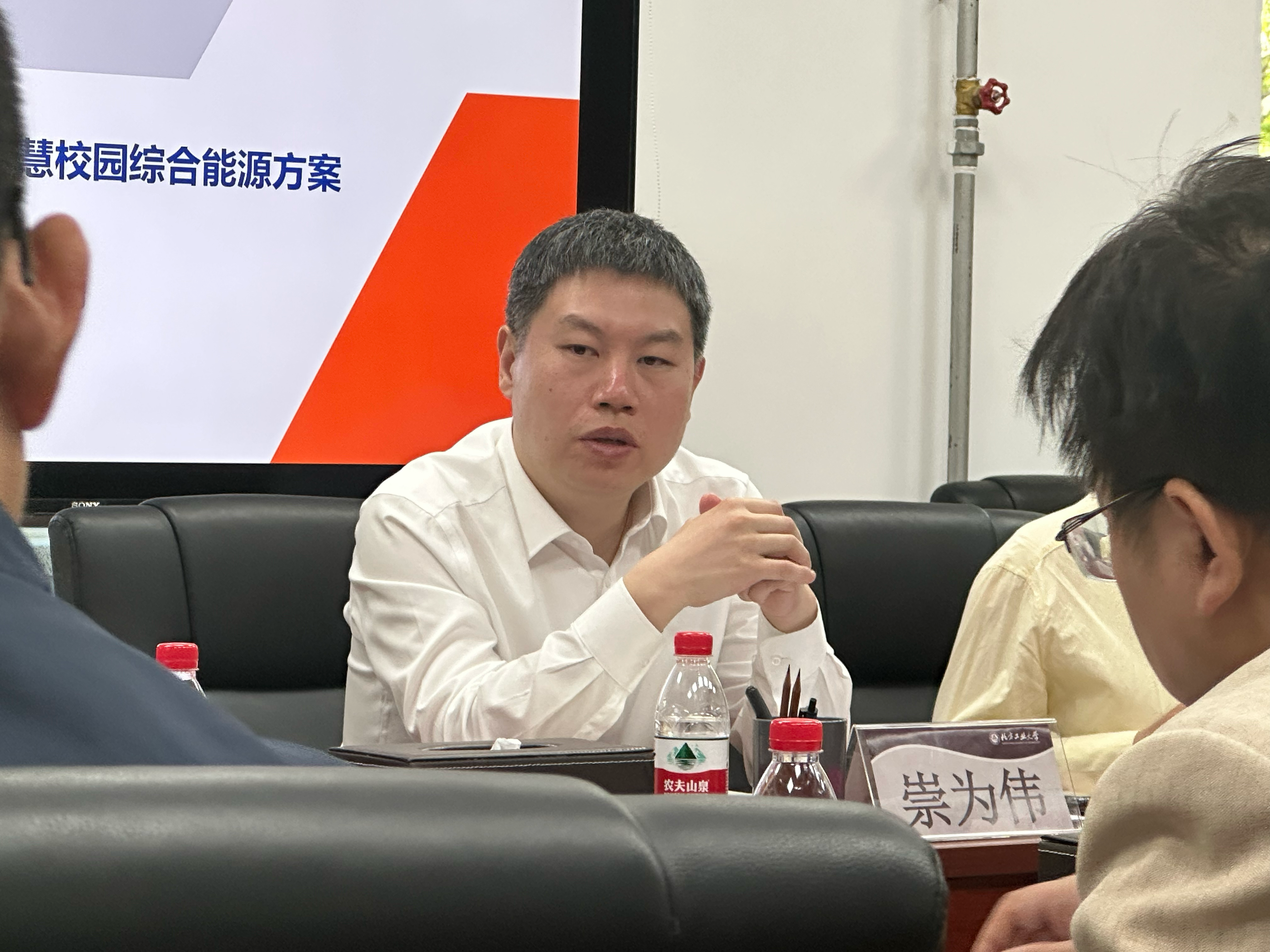 崇为伟介绍了京能科技在新能源、综合能源服务等领域的产业布局,重点阐述了集团在太阳成集团tyc9728延庆校区的低碳改造规划。他表示,京能科技将充分发挥在能源数字化、智慧运维等方面的技术优势,与学校共同探索“零碳校园”解决方案,推动科研成果转化与人才培养双向赋能。京能科技长三角分公司副总经理马勍详细介绍了具体技术路径和合作模式提出了建设性意见。