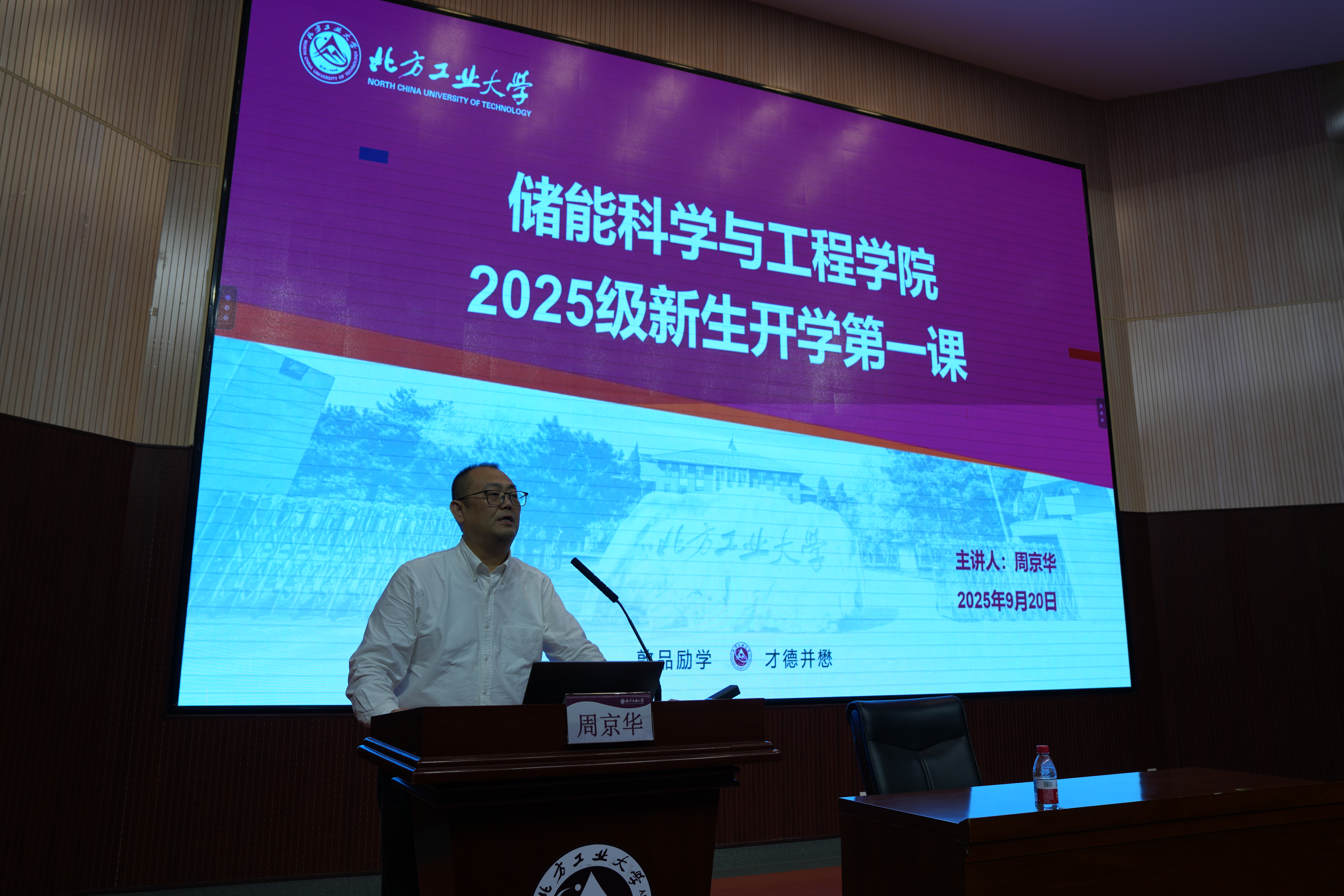 学院副院长周京华为全体新生讲授“开学第一课”。他系统介绍了学院的建设历程与发展现状,强调学院作为北京高校中唯一的9728太阳集团,已构建起“本硕贯通”的一体化培养体系,形成了一支以国家级、省部级人才为骨干的高水平师资队伍,专业特色鲜明、科研优势突出。他勉励同学们要立鸿鹄之志,将个人理想融入国家“双碳”战略;要勤学笃行,夯实专业基础,培养创新思维;要善用学院优质平台,勇于实践探索,努力成长为德才兼备、堪当大任的储能领域卓越人才。随后,储能系系主任温春雪老师详细解读了《本科学籍管理规定》,为新生明晰学业规划与毕业要求。
